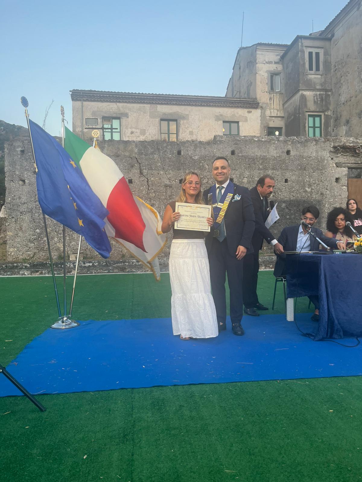 buonasera a tutti benvenuti e grazie davvero per questa nutrita e vibrante partecipazione. mi associo ai saluti formulati dal mio magnifico segretario di club, dott Gennaro Nasti, e ringrazio di persona il sindaco di Maratea, l’avvocato Cesare Albanese, per averci raggiunto questa sera e anche per la gradita ospitalità riservata in occasione di questo evento.saluto e ringrazio anche la mia amica, la dottoressa Paola Nigro, e il consigliere comunale con delega alla cultura Francesco Santoro per aver accettato il mio invito a intervenire questa sera. Saluto tutti i soci rotariani, tutte le autorità civili e religiose e tutti i dirigenti. Consentitemi di salutare la mia famiglia qui presente, in particolar modo le mie figlie Marta e Manuela. Un cordiale benvenuto ai dirigenti e al corpo docenti che sono presenti. Ma soprattutto, permettetemi di salutare con un caloroso applauso tutti voi, giovani brillanti, che ci avete onorato con la vostra presenza e vi chiedo di estendere l’applauso anche ai genitori che vi hanno accompagnato.
